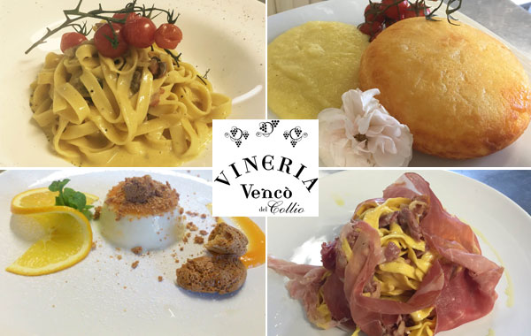 VINERIA VENCÒ DEL COLLIO è un ristorante unico, elegante e familiare tra le splendide colline del Collio Friulano. Una zona nota per le eccellenti produzioni di vini pregiati. La cucina propone piatti tipici locali, per valorizzare e diffondere la cultura e i prodotti del nostro territorio, patrimonio di eccellenze enogastronomiche: vini, grappe, carni, pesce, salami, prosciutto crudo, formaggi, frico, polenta, brovada, gubana, aglio, olio di oliva, marmellate, miele.