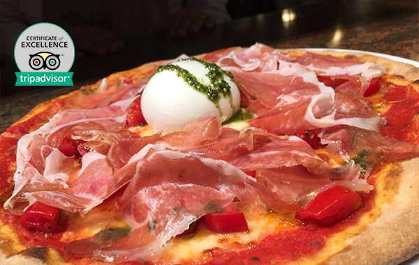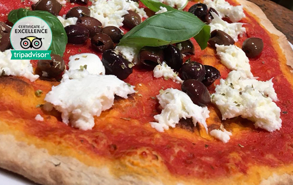 Pizza e pane realizzati con farine selezionate macinate a pietra e cotti rigorosamente nel forno a legna.