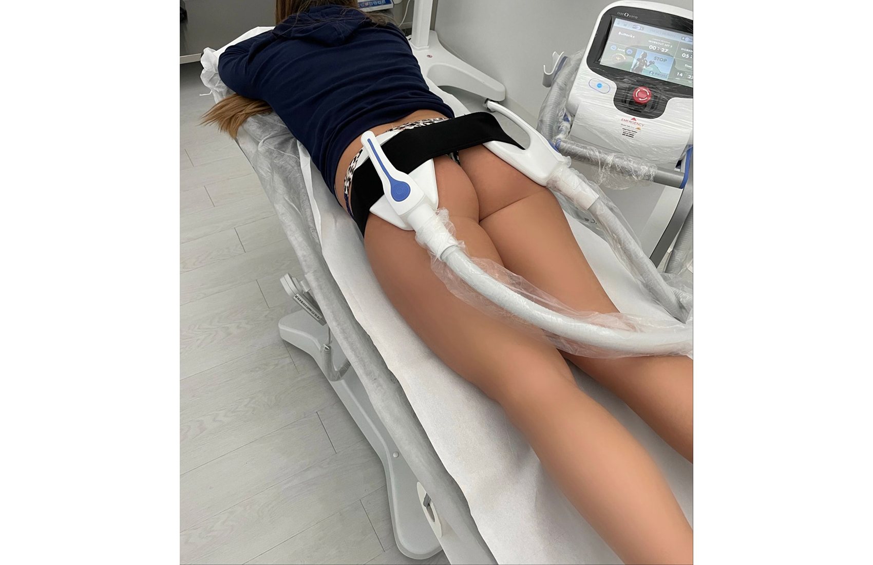 Una seduta dura circa 30 minuti, non provoca fastidio ed ha lo stesso effetto di eseguire più di 20000 crunch o squat. Questa tecnologia utilizza dei campi elettromagnetici focalizzati (HI-EMT), assolutamente innocui, che stimolano il motoneutoneurone (fibra nervosa che innerva i muscoli) che crea delle contrazioni muscolari sovramassimali non raggiungibili attraverso contrazioni volontarie. Il muscolo viene quindi obbligato ad un profondo rimodellamento ottenendo la riduzione del grasso e la sua ridefinizione, con effetti duraturi. Questa tecnologia è ideale per lo sviluppo ed il sollevamento del gluteo, dei muscoli addominali e delle gambe.