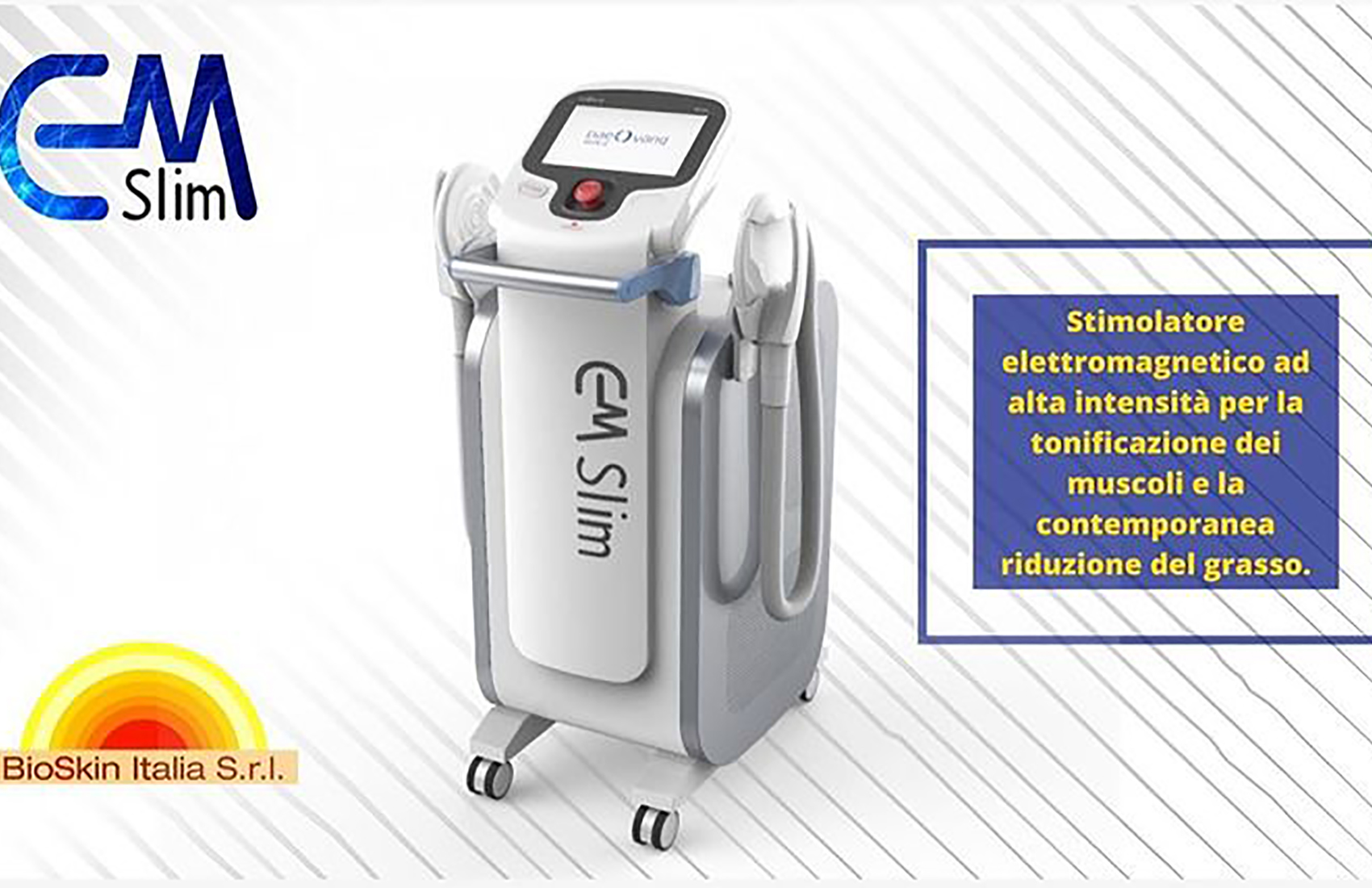 CM Slim, è uno stimolatore elettromagnetico ad alta intensità per la tonificazione dei muscoli e la contemporanea riduzione del grasso. Un campo elettromagnetico che interagisce con i tessuti muscolari attivando la loro contrazione. Agisce su diverse aree del corpo e in poche sedute riduce il grasso localizzato, tonifica e dona volume ai muscoli, migliorando inoltre l'aspetto posturale.