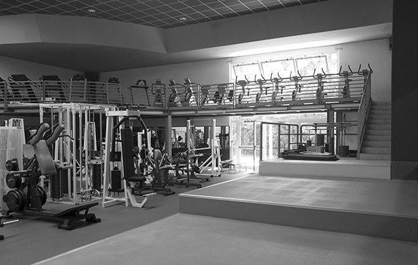 Sala macchine su due livelli, con area cardio rialzata e zona pesi separata. Ampia disponibilità di manubri e bilancieri per soddisfare ogni esigenza.